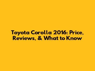 Toyota Corolla 2016: Price, Reviews, & What To Know
