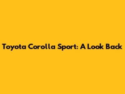 Toyota Corolla Sport: A Look Back