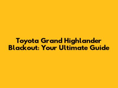Toyota Grand Highlander Blackout: Everything You Need To Know
