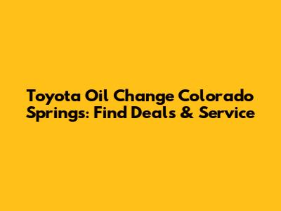 Toyota Oil Change Colorado Springs: Find Deals & Service