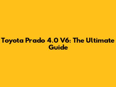 Toyota Prado 4.0 V6: Ultimate Guide