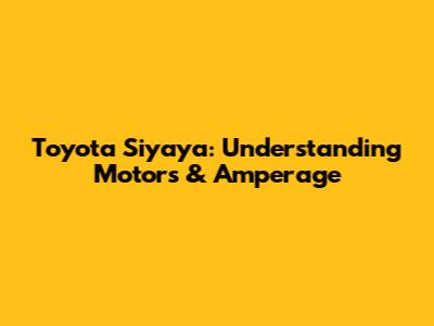 Toyota Siyaya: Understanding Motors & Amperage