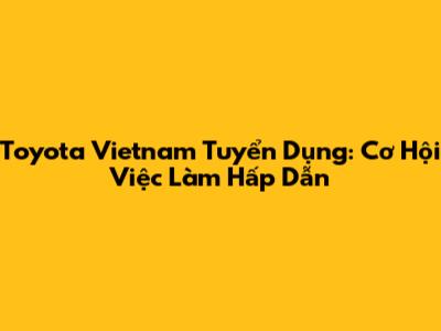 Toyota Vietnam Tuyển Dụng: Cơ Hội Việc Làm Hấp Dẫn