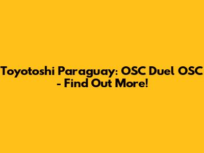 Toyotoshi Paraguay: OSC Duel OSC - Find Out More!
