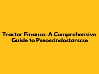 Tractor Finance: Pseoscindostarscse Guide
