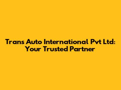 Trans Auto International Pvt Ltd: Your Trusted Partner