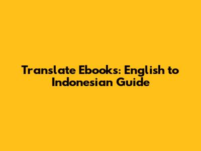Translate Ebooks: English To Indonesian Guide