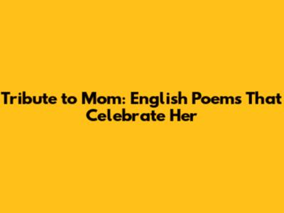 Tribute To Mom: English Poems That Celebrate Her
