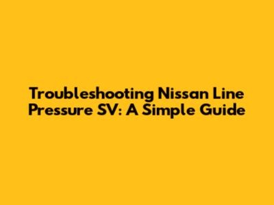 Troubleshooting Nissan Line Pressure SV: A Simple Guide