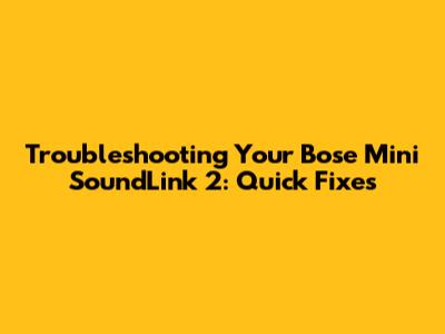 Troubleshooting Your Bose Mini SoundLink 2: Quick Fixes