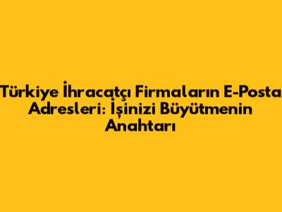 Selam millet! Bugün sizlere, işini global arenaya taşımak isteyen arkadaşlar için süper önemli bir konudan bahsedeceğim: Türk ihracatçı firmaların e-posta adresleri. Bu listede, doğru kişilere ulaşarak yeni iş bağlantıları kurmanın, potansiyel müşterilerle tanışmanın ve markanızı uluslararası platformlarda tanıtmanın inceliklerini anlatacağım. Eminim ki bu rehber, ihracat hedeflerinize ulaşmanızda size büyük fayda sağlayacak. Hazırsanız, başlayalım!