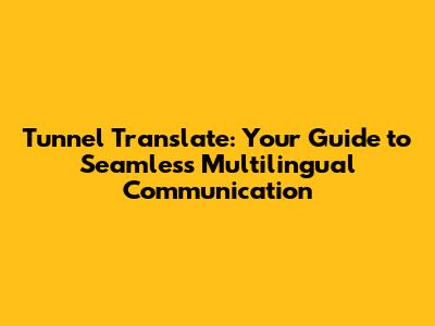 Tunnel Translate: Your Guide To Seamless Multilingual Communication