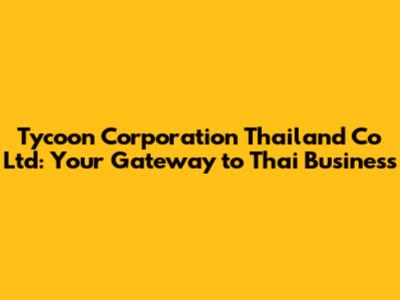 Tycoon Corporation Thailand: Your Gateway To Thai Business