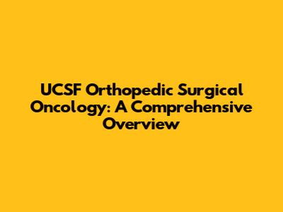 UCSF Orthopedic Surgical Oncology: A Comprehensive Overview
