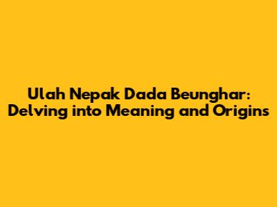 Ulah Nepak Dada Beunghar: Exploring The Meaning & Origins