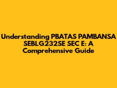 Understanding PBATAS PAMBANSA SEBLG232SE SEC E: A Comprehensive Guide