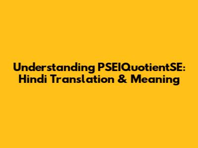 Understanding PSEIQuotientSE: Hindi Translation & Meaning