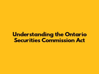 Understanding The Ontario Securities Commission Act