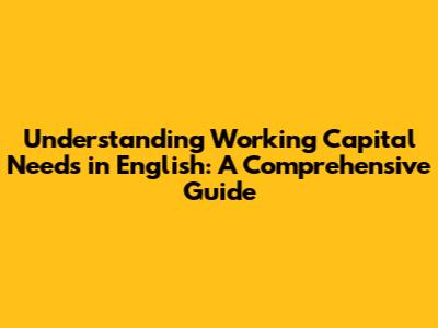 Understanding Working Capital Needs In English