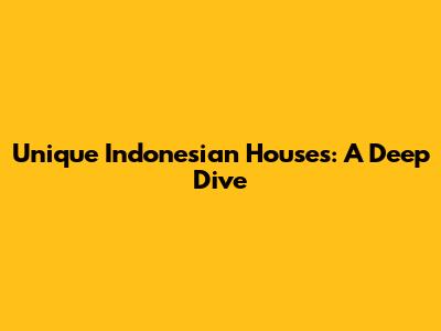 Unique Indonesian Houses: A Deep Dive