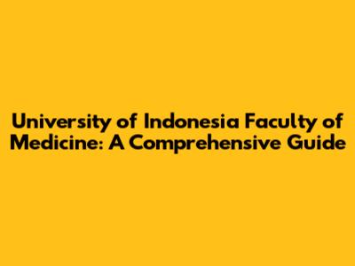 University Of Indonesia Faculty Of Medicine: A Comprehensive Guide