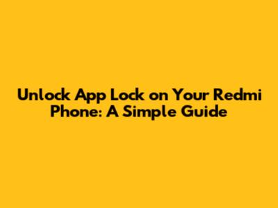 Unlock App Lock On Your Redmi Phone: A Simple Guide