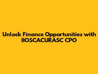 Unlock Finance Opportunities With IIOSCACURASC CPO