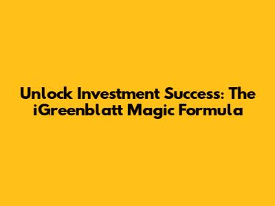 Unlock Investment Success: The IGreenblatt Magic Formula