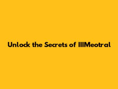 Unlock The Secrets Of IIIMeotral