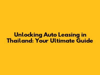 Unlocking Auto Leasing In Thailand: A Comprehensive Guide