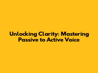 Unlocking Clarity: Mastering Passive To Active Voice