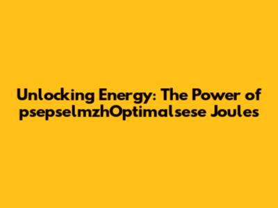Unlocking Energy: The Power Of PsepselmzhOptimalsese Joules