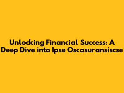 Unlocking Financial Success: A Deep Dive Into Ipse Oscasuransiscse