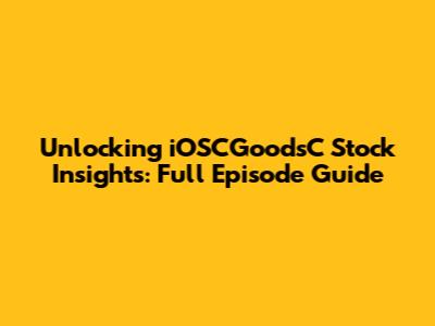 Unlocking IOSCGoodsC Stock Insights: Full Episode Guide