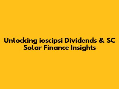 Unlocking Ioscipsi Dividends & SC Solar Finance Insights
