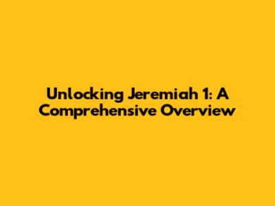 Unlocking Jeremiah 1: A Comprehensive Overview