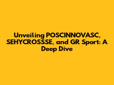 Unlocking Performance: POSCINNOVASC, SEHYCROSSSE, And GR Sport