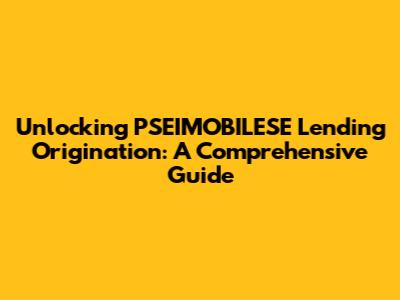 Unlocking PSEIMOBILESE Lending Origination: A Comprehensive Guide