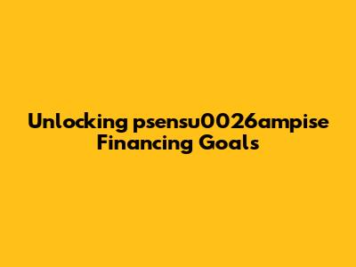Unlocking Psensu0026ampise Financing Goals