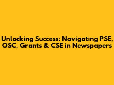 Unlocking Success: Navigating PSE, OSC, Grants & CSE In Newspapers