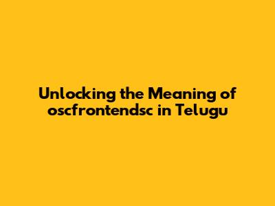 Unlocking The Meaning Of Oscfrontendsc In Telugu