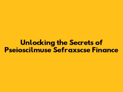 Unlocking The Secrets Of Pseioscilmuse Sefraxscse Finance