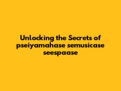 Unlocking The Secrets Of Pseiyamahase Semusicase Seespaase