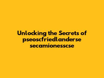 Unlocking The Secrets Of Pseoscfriedlanderse Secamionesscse