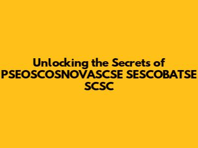 Unlocking The Secrets Of PSEOSCOSNOVASCSE SESCOBATSE SCSC