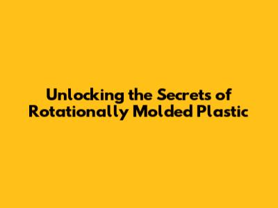 Unlocking The Secrets Of Rotationally Molded Plastic