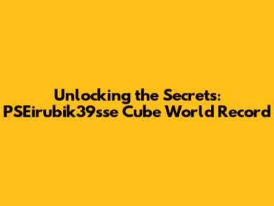 Unlocking The Secrets: PSEirubik39sse Cube World Record