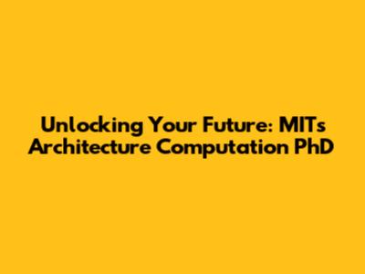 Unlocking Your Future: MIT's Architecture Computation PhD