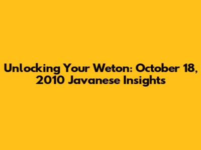 Unlocking Your Weton: October 18, 2010 Javanese Insights