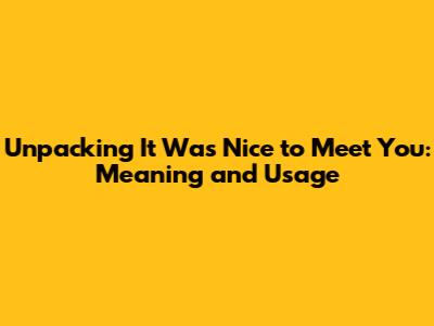 Unpacking 'It Was Nice To Meet You': Meaning And Usage